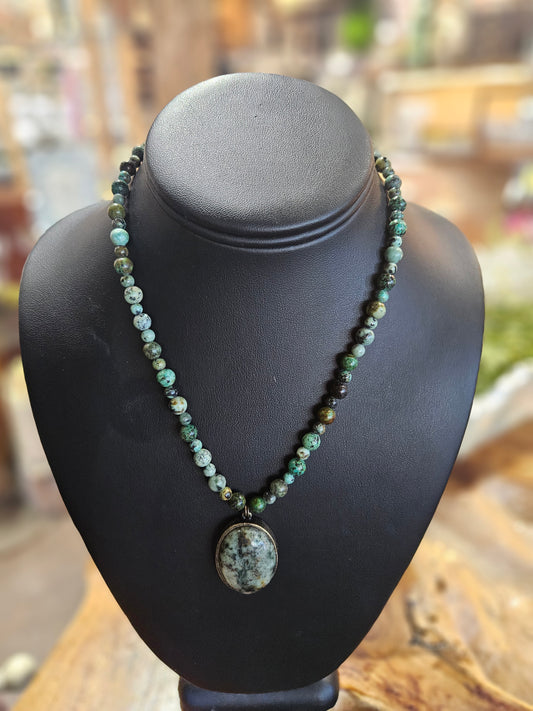 Oval Cabochon with African Turquoise Beads Necklace