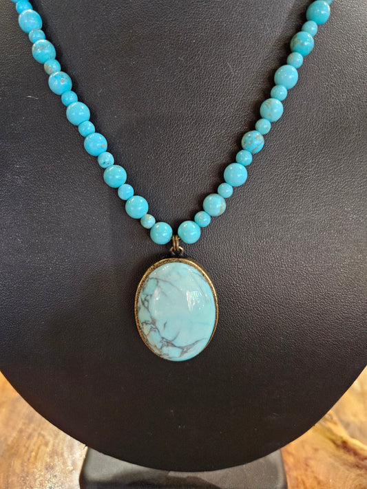 Oval cabochon turquoise beaded necklace